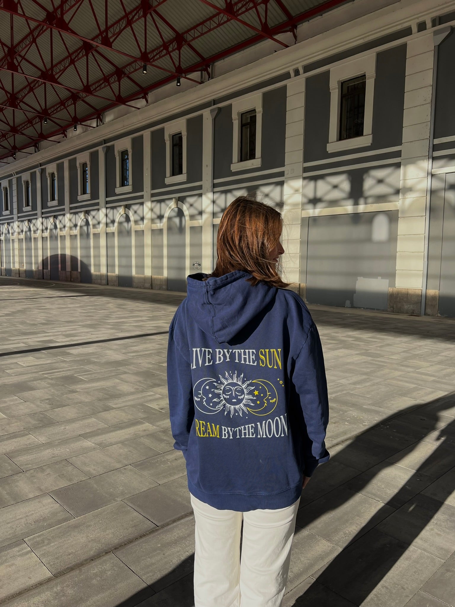 Sudadera oversize, color azul y talla L. Es la ultima que queda... No te lo pienses que en 3 días la tienes en casa.